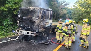 제주에서 도로를 주행하는 화물차에 불이 나는 사고가 발생했다.20일 제주소방안전본부에 따르면 이날 오후 3시46분께 제주시 아라1동 인근 산록북로에서 5t트럭에 불이 났다는 신고가 접수됐다.당시 화물차 엔진룸에서 연기가 나는 것을 목격한 운전자가 119에 신고한 것으로 알려졌다.이 불은 신고를 받고 출동한 119에 의해 오후 4시2분께 진화됐다.화재로 인한 인명피해는 없었지만, 차선이 일부 통제되면서 몇 분간 정체가 빚어졌다.소방당국은 정확한 화재 원인을 조사 중이다.전예린 기자