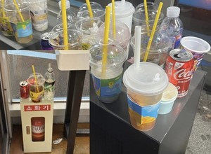 "소화기 위까지 플라스틱 컵들이 쌓여 산을 이룹니다"제주형 간선급행버스체계(BRT) 고급화 사업에 따른 양문형 저상버스 전용 '섬식정류장'이 지난 5월 설치·운영 중인 가운데, 일대 쓰레기들이 무분별하게 버려지면서 시민들의 눈살을 찌푸리게 하고 있다.19일 오후 제주시 서광로 섬식정류장에는 버스를 기다리는 시민들의 인파와 함께 바닥에 버려진 쓰레기들이 눈에 띄었다.시민들이 앉아서 휴식할 수 있도록 만들어진 벤치에는 일회용 플라스틱 컵이 덩그러니 놓여 있었다.특히 '소화기'라고 적힌 소방시설에 먹다 남은 플라스틱 음료병과 캔들이 쌓이