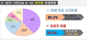 해녀의 고령화로 인해 사고 위험이 증가하고 있어 각별한 주의가 요구된다.22일 제주소방안전본부에 따르면 최근 6년간(2020~2025년) 제주에서는 총 116건의 해녀 안전사고가 발생했다. 연평균 20건에 달하는 사고가 일어난 셈이다.사고 원인별로 보면 심정지가 전체의 39.5%(32건)로 가장 많았다.두통·어지러움 18.5%(15건), 낙상 17.3%(14건), 익수 7.4%(6건), 호흡곤란 6.2%(5건) 순으로 집계됐다. 지역별로는 동부 43.2%(35건)가 가장 많았으며 서부 32.1%(26건), 제주시 동지역 14.8%(