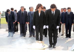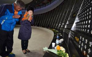 4․3 제70주년 추념식이 3일 오전 10시 제주시 봉개동 제주 4․3평화공원에서 봉행되는 가운데 유족들이 희생자 각명비에서 참배하고 있다.