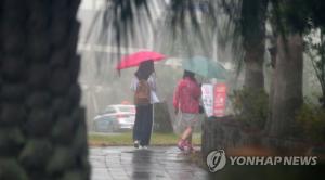 제주지방기상청은 27일 오전 8시를 기해 제주도 남부에 호우주의보를 발효했다.또 이날 오전 4시 45분부터 제주 추자도의 호우주의보를 호우경보로 격상했다.이날 0시부터 오전 7시 30분까지 제주 동·남부지역에 있는 성산 수산리에 60㎜의 비가 내렸다. 서귀포시 강정 33.5㎜, 안덕 서광 29.5㎜의 강수량을 기록했다.같은 시간 추자도에 96.5㎜, 한라산 사제비오름 78㎜, 윗세오름 62.5㎜, 삼각봉 62.5㎜의 비가 내렸다.기상 악화로 한라산 등산은 전면 통제됐다. 제주공항에는 윈드시어 특보가 내려졌다.기상청은 28일까지 남해