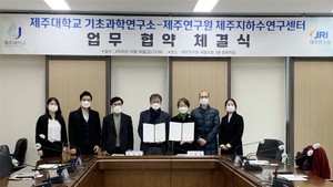 제주대학교 기초과학연구소(소장 김명숙)와 제주연구원 제주지하수연구센터(센터장 박원배)는 지난 18일 제주연구원에서 청정제주의 자연환경 보전을 위한 기초과학 연구 활성화를 통해 제주 지하수의 관리 시스템을 구축하고 연구개발 기반 정책을 개발하기 위한 업무협약을 체결했다.양 기관은 협약을 통해 △제주 지하수의 지속가능한 활용을 위한 기초과학 공동연구 △제주 지하수 함유량의 모니터링 및 수질개선을 위한 노력 △제주 자연환경 분야 우수인재 양성 및 지원을 위한 교류협력 등에 상호 협력한다.제주대 기초과학연구소는 '제주 생물권 보전 및 청정