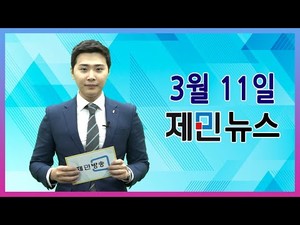 3월 11일 제민뉴스입니다.1. 제주도 제2공항 입장표명 반대-찬성 팽팽http://www.jemin.com/news/articleView.html?idxno=713207http://www.jemin.com/news/articleView.html?idxno=7132082. 제주 백신 접종 '순항'…1분기 이달 접종 완료 추진http://www.jemin.com/news/articleView.html?idxno=7131403. [무공침] 높은 경쟁률http://www.jemin.com/news/articleView.html?idxno