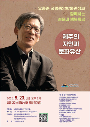 ‘나의 문화유산 답사기’ 시리즈로 잘 알려진 유홍준 국립중앙박물관장이 제주를 찾아 ‘제주의 자연과 문화유산’을 주제로 특강을 진행한다.제주특별자치도 설문대여성문화센터는 오는 23 오후 2시 센터 공연장에서 ‘유홍준 국립중앙박물관장 초청 설문대 행복특강’을 개최한다고 6일 밝혔다.유홍준 관장은 국내 인문 도서 최초의 밀리언셀러(100만부 돌파)로서 남도 답사 열풍을 이끈 문화유산 전도사이며, 지난 7월 국립중앙박물관장으로 취임한, 이 시대를 대표하는 석학이다.이번 특강에서는 제주의 자연, 역사, 민속, 언어, 미술이 하나로 어우러진