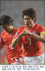 캡틴’ 박지성(맨체스터 유나이티드)이 위기의 허정무호에 천금같은 동점골을 안기며 기어코승점 1점을 챙겨냈다.허정무 감독이 이끄는 한국 축구대표팀은 11일 오후 이란 테헤란 아자디 스타디움에서 벌어진 2010 남아프리카공화국 월드컵 아시아 최종예선 B조 4차전에서 후반 13분 자바드 네쿠남에게 선제골을 내줬으나 후반 36분 박지성의 극적인 동점골로