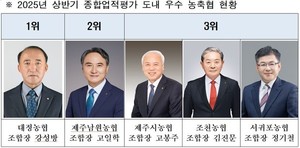 대정농협 1위 영예…제주남원농협 2위 선정제주시·조천·서귀포농협도…"상생 등 지속"농협중앙회 제주본부(본부장 고우일)는 2025년 상반기 농·축협 전국 종합업적평가 결과 도내 농협이 우수한 성적을 거뒀다고 3일 밝혔다.해당 종합업적평가는 농협중앙회에서 실시하는 가장 권위 있는 평가로 전국 1110개 농·축협을 40개 그룹으로 나눠 종합적인 사업에 대한 평가를 진행하고 시상한다.이에 평가 결과 대정농협(조합장 강성방)이 1위를 차지했다. 이어 제주남원농협(조합장 고일학)은 2위, 제주시농협(조합장 고봉주)·조천농협(조합장 김진문)·서