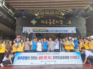 '민생 회복 소비 쿠폰' 모금 동참매칭 그랜트 방식 4300만원 조성취약계층 400가구 생필품 등 전달경제 살리기 일환 장보기 행사도제주지역 나눔과 상생의 가치를 실현하기 위해 제주도와 제주은행, 적십자사가 공동으로 취약계층 지원 및 민생경제 살리기에 힘을 모았다.제주은행(은행장 이희수)은 4일 임직원이 자발적으로 모금한 4300만원을 대한적십자사 제주도지사(회장 정태근)에 기부했다.이번 모금은 이희수 제주은행장을 비롯한 전 임직원들이 참여했다. 제주은행 직원의 아이디어로 정부의 '민생 회복 소비 쿠폰'을 십시일반 모금한 2100여