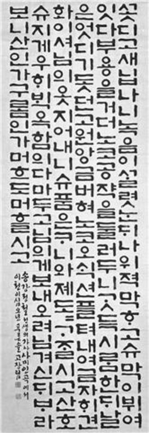 ㈔제주도한글서예사랑모임이 추석 연휴기간 한글 서예의 아름다움을 만끽하는 자리를 만든다.㈔제주도한글서예사랑모임은 다음달 4일부터 9일까지 제주도 문예회관에서 '제24회 한글문화큰잔치'를 개최한다.이번 행사는 훈민정음 반포 579돌이 되는 한글날을 맞아 'ᄒᆞᆫ디 손심엉 한글문화 올림픽'의 일환으로, 세계로 퍼져 나가는 한글문화의 융성과 제주어의 보전을 위해 마련됐다.우선 '전국 한글서예 초대작가 작품전'을 통해 제주와 전국, 해외의 한글서예 작가 79명이 작품을 선보인다.'전국 한글서예 수상 작품전'에서는 바른글씨, 곧은글씨, 나름글