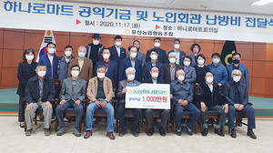 표선농협(조합장 고철민)은 17일 하나로마트 회의실에서 표선농협 하나로마트 공익기금 및 노인회관 난방비 전달식을 가졌다.하나로마트 공익기금은 지역내 취약가정에 쌀 5㎏ 240포를, 예담요양원 및 각 마을 노인회에는 1000만원을 기탁했다. 또 14개 노인회관에 700만원의 난방비를 지원하는등 총 1700만원을 전달했다.전달된 성금은 기업사회환원의 일환으로서 마련한 하나로마트 수익금과 표선농협 복지사업비로 지원할 예정이다.