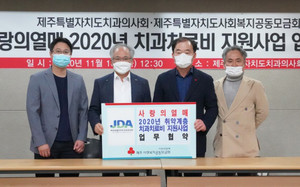 제주특별자치도치과의사회(회장 장은식)와 제주사회복지공동모금회(회장 김남식)는 최근 도치과의사회관에서 '사랑의열매 2020년 치과치료비 지원사업' 업무협약을 가졌다. 공동모금회는 '사랑의열매 2020년 치과치료비 지원사업'으로 예산 4억원을 편성해 도내 저소득층 중 치과치료비가 필요한 만 65세 미만의 개인을 대상으로 틀니, 브릿지, 크라운, 의치보철, 임플란트 등의 치과치료비를 지원할 예정이다.