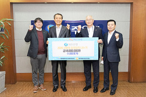 제주사회복지공동모금회(회장 김남식)는 18일 공무원연금공단 대회의실에서 공무원연금공단(이사장 정남준), KB국민은행(은행장 허인)과 지역사회 복지향상 및 나눔확산 업무협약을 갖고 기부금 5000만원 전달식을 진행했다. 협약을 통해 KB국민은행은 성금 5000만원을 공동모금회에 기탁하고, 공동모금회는 나눔사업을 전개하며, 공무원연금공단은 자원봉사자 지원사업에 협력하기로 했다.