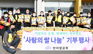 한라팔공회(회장 부창근)는 3일과 4일 도내 저소득 가구와 복지시설에 1000만원 상당의 쌀 305포를 전달했다. 한라팔공회는 올해 창립 10주년을 맞아 김장김치 나눔행사를 진행할 계획이었으나 사회적 거리두기가 강화됨에 따라 쌀 나눔행사로 대체하게 됐다.