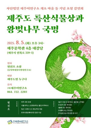 사단법인 제주어연구소(이사장 강영봉)는 개소 9돌을 기념해 오는 5일 오후 3시 제주문학관 4층 대강당에서 식물학자 현진오 박사 초청 강연회를 진행한다고 밝혔다. 재단법인 동북아생물다양성연구소장인 현진오 박사는 이날 '제주도 특산식물상과 왕벚나무 국명'을 주제로 제주도 특산식물상과 왕벚나무를 통해 식물의 보고인 제주의 가치를 소개한다.특산식물은 특정 지역에서 적응하고 진화한 식물이다. 한반도에서 서식하면 한반도 특산식물이 되고, 제주도에서만 서식하면 제주 특산식물이 된다. 현 박사는 이날 강연에서 한반도 특산식물 373군 가운데 제