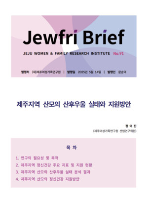 제주지역 산모들의 산후우울감 경험률은 전국과 비슷하지만, 우울감의 지속기간은 더 길고 위험군 비율도 더 높은 것으로 나타났다. 이에 정신건강 강화를 위한 지역 맞춤형 정책 마련이 시급하다는 지적이다.제주여성가족연구원은 15일 ‘제주지역 산모의 산후우울 실태와 지원방안’ 브리프를 통해 제주지역 산모들의 산후우울 실태를 분석하고 정책적 개선 방향을 제안했다.이번 연구는 ‘2021년 보건복지부 산후조리실태조사’ 제주지역 자료에 대한 2차 분석과 함께 지역 내 정신건강 실태 및 산후우울 고위험군에 대한 심층 분석을 통해 지역 맞춤형 정책