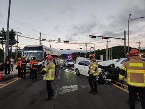 서귀포의 한 교차로에서 전세버스와 승용차가 충돌하는 사고가 발생해 4명이 다쳤다.7일 제주소방안전본부에 따르면, 이날 오후 6시 2분께 서귀포시 성산읍 신양교차로에서 20여명을 태운 전세버스와 승용차가 충돌했다.이 사고로 승용차에 타고 있던 외국인 여성 1명과 전세버스 승객 3명 등 4명이 다쳐 병원으로 이송됐다.경찰은 정확한 사고 경위를 조사 중이다.