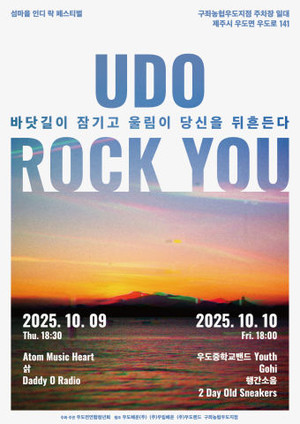 우도의 소박한 풍경과 인디 락의 열기가 어우러질 축제의 장이 열린다.우도면은 다음달 9일부터 10일까지 농협우도지점 주차장 일대에서 인디 락 페스티벌 'U DO ROCK YOU 2025'를 개최한다.이번 페스티벌은 '고립의 자유'라는 주제 아래 우도면연합청년회와 지역 주민들의 적극적인 참여를 바탕으로 첫 무대를 선보일 예정이다.특히 섬이라는 공간적 특성을 살려 우도 8경 중 하나인 천진관산을 배경으로 공연한다.첫날인 9일에는 싸이키델릭 사운드와 빈티지 감성을 결합한 '아톰뮤직하트', 자유롭고 거친 연주가 특징인 '삵', 국내 유일의