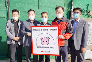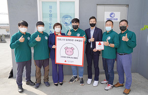 제주양돈수의사회(회장 박정훈)는 지난 27일 제주양돈수의사회에서 제주사회복지공동모금회(회장 김남식)와 제주양돈농협(조합장 고권진), ㈔대한한돈협회 제주도협의회(회장 김재우)가 내년 4월 6일까지 진행하는 '230일의 행복나눔 릴레이 캠페인'에 양돈농가 관련 단체로는 처음으로 동참하고 기부금을 전달했다.