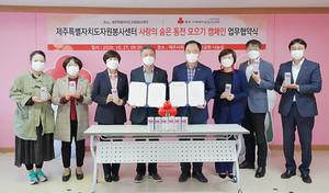 제주특별자치도자원봉사센터(센터장 고태언)와 제주사회복지공동모금회(회장 김남식)는 지난 27일 공동모금회 나눔실에서 '사랑의 숨은 동전 모으기 캠페인' 협약을 가졌다. 이번 캠페인은 제주도자원봉사센터에 등록된 자원봉사자를 대상으로 집이나 차량 등에 방치되거나 사용하지 않는 동전을 모아 어려운 이웃을 돕기 위해 마련됐다. 협약에 따라 제주도자원봉사센터는 모금 안내·홍보와 함께 모금함 관리·배부·수거 활동을 진행한다. 고태언 센터장은 "많은 분들의 나눔 동참으로 동전이 모여 소외된 이웃에 온정이 전해지길 바란다"고 말했다.