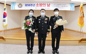 제주소방서(서장 김영호)는 9일 제58주년 소방의 날을 맞아 기념 행사장에서 직원 16명에 대한 하트·브레인·트라우마 세이버 수여식을 가졌다. 수여식에서는 구급대원 2명이 대표로 세이버 인증서를 받았다.