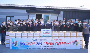 ㈜월드씨앤에스(대표 김용광)는 9일 월드씨앤에스에서 창립 13주년을 맞아 어려운 이웃을 위해 사용해달라며 김장김치 150박스(250만원 상당)를 제주사회복지공동모금회(회장 김남식)에 기탁했다. 기탁 물품은 조천읍 지역내 사회복지시설에 전달될 예정이다.