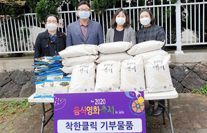 ㈔식생활교육제주네트워크는 지난달 22~26일 개최한 2020년 제주음식영화축제에서 '착한 클릭' 프로그램을 통해 이웃돕기 물품을 기부했다고 12일 밝혔다.'착한 클릭'은 참가자들이 식생활 교육 동영상을 시청하면 그 횟수만큼 어려운 이웃에게 물품을 기부하는 축제 프로그램이다.동영상은 건강하고 안전한 먹거리, 코로나19를 이기는 방법, 친환경 급식, GMO와 관련한 내용 등 다양한 내용을 시청할 수 있도록 했다.착한 클릭을 통해 취약계층을 위한 쌀과 멸치를 각각 30포씩 기부하게 됐다. 물품은 제주시 이도2동주민센터를 통해 취약계층에