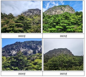 한라산 구상나무가 3년 주기로 꽃을 피우는 것으로 확인됐다.제주도 세계유산본부는 최근 4년간 한라산 구상나무 자생지 현장조사를 통해 구상나무 암꽃 개화상황을 조사한 결과 개화주기가 3년으로 처음 확인됐다고 14일 밝혔다.한라산연구부는 한라산 영실과 성판악, 왕관릉, 방애오름, 윗세오름, 백록샘, 큰두레왓 등 7개 지역·10곳에서 조사를 실시했다.그 결과 지난 2022년 구상나무 한 그루에 달린 암꽃(암구화수)은 평균 120.0개였고, 2023년 평균 8.8개, 지난해 평균 13.9개로 파악됐다. 올해는 평균 106.4개의 암꽃이 피