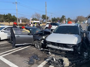 주행 중이던 차량이 주차된 차량 4대를 들이받는 사고가 발생했다.23일 제주소방안전본부에 따르면 이날 오후 1시35분께 제주시 오등동 관음사 주차장에서 차량 4대가 부딪혔다는 신고가 접수됐다.이 사고로 차량에 타고 있던 3명이 다쳐 119구급대에 의해 병원으로 이송됐다.경찰은 정확한 사고 경위를 조사하고 있다.전예린 기자