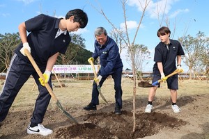 제주지역 기후 위기 대응을 위한 도시 숲 조성에 도내 학생들이 두 팔을 걷고 나섰다.제주시는 지난 22일 조천읍 신촌리 '기후 대응 도시 숲(신촌~회천)'에서 조천중학교(교장 문정배) 학생들과 나무 심기 행사를 진행했다고 밝혔다.이날 행사에서 조천중학교 학생 74명과 교직원들이 참여한 가운데 한라생태숲에서 지원한 제주 왕벚나무 100그루를 식재했다.이 과정에서 학생들은 직접 나무를 심으며 자연과 친숙해지고 녹색 환경을 지키기 위한 작은 실천이 탄소 중립을 향한 큰 변화를 만든다는 것을 배우는 소중한 시간을 가졌다.김완근 제주시장은