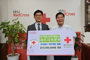 한국토지주택공사 제주지역본부, 1500만원 기탁대한적십자사 제주도지사, 취약계층에 지원 예정한국토지주택공사 제주지역본부(본부장 문정만)는 추석맞이 성금으로 온누리상품권 1500만원을 대한적십자사 제주도지사(회장 정태근)에 전달했다.이번 성금은 민족 대명절인 추석을 앞둬 생활비 부담을 덜어주고 따뜻한 나눔을 확산하기 위한 취지로 마련됐다. 이에 상품권은 한국토지주택공사 관할 임대주택 입주민과 지역 내 취약계층 가정에 지원된다.문정만 한국토지주택공사 제주지역본부장은 "우리 주변의 이웃들이 보다 따뜻하고 풍성한 추석을 보내길 바란다"며