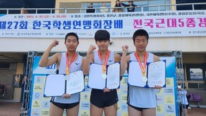 제주근대5종 귀일중학교 꿈나무 선수들이 지난 4월 25~29일 강원도 홍천군에서 열린 제27회 한국학생연맹회장배 전국근대5종경기대회에서 상위권 입상 성적을 거뒀다.귀일중학교(교장 남효봉) 근대5종팀은 남중부 근대3종(수영, 레이저런)에 신현규가 출전해 수영 2위(301점), 레이저런 3위(594점) 총 득점 895점으로 1위 경북체중 김동원(903점)에 이어 아쉽게 2위를 차지하고 은메달을 목에 걸었다.아울러 근대3종 계주경기에 출전한 신현규, 박진우, 정태율은 수영 7위(263점)을 얻어 레이저런 경기 7번째로 출발해 앞에 있는