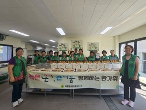 서홍동새마을부녀회(회장 장은진)에서는 지난 13일 부녀회원 20여명이 참석한 가운데 관내 독거노인 가구 및 취약계층 20가구를 대상으로 ‘추석 한상차림’나눔 활동을 추진했다.이날 활동을 통해 부녀회는 독거노인 및 취약계층의 안부 확인 및 함께하는 공동체 문화조성에 힘을 보탰다. 이와 함께 지속적으로 소외계층에 대한 온기나눔을 실천할 계획이다.장은진 부녀회장은 "관내 독거노인을 비롯한 취약계층이 외로움을 느끼지 않고 힘을 낼 수 있도록 꾸준히 부녀회가 앞장서 봉사를 전개하겠다"고 말했다.