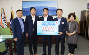 ㈜지산철강·㈜재성철강 한해성 대표는 11일 제주시청 시장실에서 저소득층 아동들의 장래를 위해 지원되는 디딤씨앗 통장 매칭 후원금 1080만원을 대한적십자사제주특별자치도지사(회장 오홍식)에 기부했다. 적십자사는 디딤씨앗 통장 후원금을 기반으로 제주시에서 추천받은 아동 10명에게 아동·청소년발달 지원사업으로 매월 3만원씩 36개월 동안 지원한다.