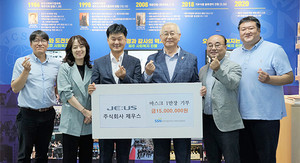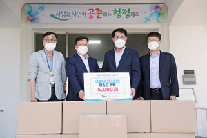 ㈜제우스(대표 김한상)는 17일 제주도사회복지협의회(회장 고승화)를 방문, 코로나19 확산 방지를 위해 방역마스크 1만장(1500만원 상당)을 기부했다.사회복지협의회는 기부 받은 마스크를 도내 취약계층과 사회적 약자를 위해 사용할 예정이다.㈜제우스는 제주지역 방역체계 구축을 위해 고기능 필터를 사용한 마스크 연구를 진행해 왔으며, 올해 식약처 인증을 받은 제주도 1호 마스크공장을 설립했다.김한상 대표는 "제주도 1호 마스크공장을 설립한 만큼 기업이 할 수 있는 사회적 책임을 다하겠다"고 말했다.한권 기자