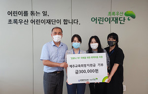 제주도교육청(교육감 이석문)은 24일 제주교육희망지원금으로 구입한 생필품을 자신보다 더 어려운 친구들에게 전달해달라고 의사를 밝힌 고등학교 2학년 오혁우 학생을 대신해 제주교육희망지원금 30만원을 초록우산 어린이재단 제주지역본부(본부장 김희석)에 전달했다.