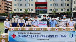 대한적십자사제주특별자치도지사(회장 오홍식)는 최근 제주대학교 생활관 집중보호실에 자가 격리중인 내·외국인 학생들을 위해 생수 8000병, 마스크 2000매, 스프레이용 손소독제 800개 등으로 구성된 600만원 상당의 코로나19 감염 예방 물품을 전달했다.