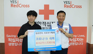 성균관대학교 사회복지과(1학년 대표 구승훈)는 27일 코로나19 감염 예방을 위해 대한적십자사제주특별자치도지사(회장 오홍식)에 마스크 300매를 전달했다. 이번 물품은 사회복지과 1학년 학생 7명이 코로나19 극복 프로그램을 운영해 마련한 것이다.