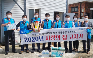 남원농협(조합장 김문일) 직원봉사단과 농협서귀포시지부(지부장 현학렬) 직원봉사단 10여명은 28일 취약농가를 찾아 사랑의 집 고치기 봉사활동을 실시했다.이날 봉사단은 장애를 갖고 있는 취약농가의 집안출입 불편을 덜어주기 위해 출입문 교체와 집안 배치 작업에 힘을 보탰다. 집 고치기는 3일에 걸쳐 실시되며 봉사단은 취약농가에 사용 할 생수, 쌀 등 생활용품을 마련하여 전달하는 의미있는 시간도 가졌다. 김문일 조합장은 "걷는 게 불편해 집안출입 하다 넘어져 크게 다쳤다는 안타까운 소식을 듣고 집수리 고치봉사를 하게 됐다"며 "농가가 흡