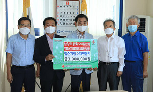 삼양초등학교 제20회 동창회(회장 양희석) 회원 일동은 지난달 31일 MG새마을금고 동제주본점에서 대한적십자사제주특별자치도지사(회장 오홍식)에 이재민 구호성금 300만원을 기탁했다. 성금은 코로나19 재확산으로 올해 칠순을 맞은 동창들이 여행을 취소하고 마련한 것이다.