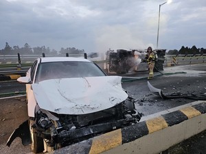 2025년 새해 첫날 1일 제주 중산간도로에서 차량 2대가 충돌하는 사고가 발생했다.2일 제주소방안전본부에 따르면 지난 1일 오후 6시 23분께 제주시 용강동 516도로에서 차량 두 대가 충돌하는 교통사고가 발생했다는 신고가 접수됐다.사고로 인해 30대 A씨가 큰 부상을 입었으며 20대 B씨도 다쳐 병으로 이송됐다.당시 신고는 아이폰 자동 긴급구조요청 기능으로 접수됐다.소방은 정확한 사고 원인을 조사 중이다.전예린 기자