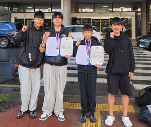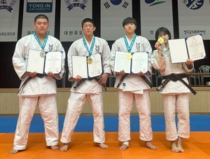 제주도 유도 선수단이 지난 14~17일 양구문화체육회관에서 열린 2025 용인대총장기 전국 남녀중·고등학교 유도대회에서 성과를 냈다.이번 대회에서 제주도선수단은 금메달 5개, 은메달 3개, 동메달 2개 등 모두 10개의 메달을 획득했다.여중부에서는 -63㎏급 곽유주(플라이유도센터), -70㎏급 이서현(플라이유도센터)이 금메달을 목에 걸었고, 남고부 -66㎏급 이재준(남녕고), 여고부 -48㎏급 강여원(남녕고), -78㎏급 김고은(남녕고)가 금메달을 거머쥐었다.아울러 여중부 -45㎏급 양아름(애월중), 남고부 +100㎏급 이진혁(남녕