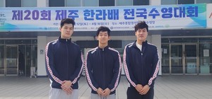 서귀포시체육회(회장 김태문)가 수탁운영중인 서귀포시청 직장운동경기부 수영부가 전국대회에서 금메달을 포함해 메달 6개를 획득하는 성과를 거뒀다.서귀포시청 수영부는 지난 12일부터 16일까지 제주종합경기장 실내수영장에서 열린 '제20회 한라배 전국수영대회'에 출전해 금메달 1개, 은메달 2개, 동메달 3개를 획득했다.윤준상과 박재훈은 남자일반부 자유형 1500m에서 1위 오세범(상무, 15분33초87)에 이어 2위 윤준상(15분38초89), 3위 박재훈(15분43초40) 순으로 들어오며 은메달과 동메달을 목에 걸었다.아울러 자유형 80