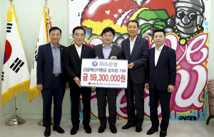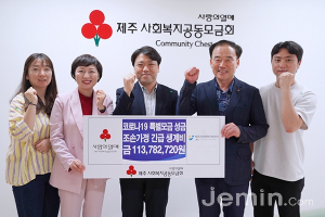 적십자사 도지사 통해 코로나19예방·긴급생계지원에 투입'십시일반' '백짓장도 맞들면 낫다' '마중물'같은 긍정 에너지를 나누는 단어를 모두 모은 것 같은 의미있는 움직임이 코로나19로 힘든 제주 사회에 희망을 던졌다.제주은행(은행장 서현주)은 지난 16일 임·직원들이 자발적으로 모금한 정부 긴급재난지원금 5930만원을 지역내 어려운 이웃을 위한 씨앗 자금으로 대한적십자사 제주특별자치도지사(회장 오홍식)에 기부했다. 지난 4월 9일 코로나19 위기 극복이라는 전 임직원의 뜻을 모아 제주도에
