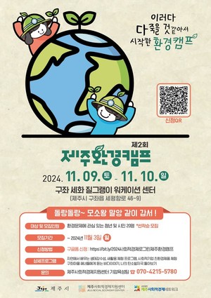 제주시는 다음달 9~10일 구좌읍 질그랭이 워케이션센터에서 제주사회적경제네트워크와 함께 '제주환경캠프 : 이러다 죽을 것 같아서'를 개최한다.이번 캠프는 기후변화에 대한 문제 심각성을 인식시키고 환경 보호와 지속 가능한 발전, 생태계 보전 등을 위한 활동을 경험하면서 일상 속 참여를 독려하기 위해 마련됐다.이날 캠프에서는 다랑쉬오름에서 생태 감수성 교육을 진행하며, 새활용·탄소발자국 줄이기 등 체험프로그램을 운영한다. 환경문제 해결을 위한 지혜를 모으기 위해 아이디어 공모도 추진할 계획이다.참여 대상은 청년 이상 제주시민 20명이다