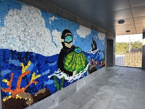지속가능발전협-도, 7일부터 도민 업사이클 아트프로젝트 벽화, 돌고래 조형 전시 선봬 플라스틱이 버려지고, 자연에서 분해되기까지 걸리는 시간은 500년. 버려진 병뚜껑이 묵직한 울림을 준다. 제주도지속가능발전협의회(상임의장 고태언)는 오는 7일부터 제주광역상활자원회수센터에서 '도민 업사이클 아트프로젝트 결과물'로 플라스틱 병뚜껑 조형물을 전시한다고 3일 밝혔다. 전시는 폐플라스틱의 새로운 가치를 발견하고, 자원순환의 중요성을 도민에게 알리기 위해 기획됐다. 전시 주제는 '이번 정거장은 동복리 자원순환 마을입니다'다. 이번 프로그램을