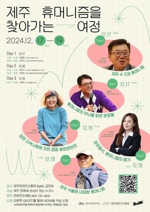 제주콘텐츠진흥원 17~19일 휴머니즘 특강…5개 세션 (재)제주콘텐츠진흥원은 오는 17~19일 '제주 휴머니즘을 찾아가는 여정'을 주제로 특강을 진행한다고 10일 밝혔다. 특강은 제주 문화와 역사 속 휴머니즘을 다각도로 조망하기 위해 마련됐다. 특강은 총 5개의 세부 주제로 나눠진다. 첫 번째 세션은 오는 17일 '휴머니즘의 무늬를 읽은 문장들'을 주제로, 제주문학을 통해 제주인들의 삶을 들여다본다. 두 번째 세션 '제주4·3과 휴머니즘'에서는 제주4·3을 뒤돌아보며 아픔과 치유의 과정을 살핀다. 18일에 진행되는 세 번째 세션은