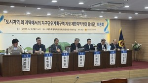 대규모 개발사업 특혜 논란이 제기된 제주 중산간지역 개발 기준 변경안을 놓고 제주도와 시민단체 양측의 입장이 여전히 평행선을 달렸다.제주도는 환경 보전과 체계적인 개발 관리를 위한 최소한의 제도적 장치라는 입장이지만, 환경단체는 특정 사업을 정당화하고, 중산간 관광개발사업 허용 근거로 작용될 수 있어 보전 취지에 어긋난다는 기존 입장차만 재확인됐다.제주도의회는 9일 '도시지역 외 지역에서의 지구단위계획구역 지정 제한지역 변경 동의안'에 대한 도민과 전문가들의 의견을 듣기 위한 토론회를 개최했다.제주도는 도시계획조례에 따라 표고 20