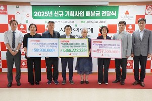 총 15억원 규모 배분금 지원…지난 5일 전달식 개최인프라·네트워크 강화 중점…사회안전망 구축 기여도제주사회복지공동모금회(회장 강지언)가 올해 기획 사업 3개에 집중한다. 단순 일시적인 지원이 아닌 복지 현장의 인프라를 강화하고 맞춤형 서비스를 제공하기 위한 것이다.제주사랑의열매는 지난 5일 '2025년 신규 기획 사업 배분금 전달식'을 개최한 가운데 총 15억원 규모의 배분금을 각 사업에 전달했다.세부적으로 △사회복지 현장 인프라 강화 △네트워크 강화 △복지 사각지대 사회안전망 구축 등이다.우선 노후화된 복지시설 인프라 개선을 통