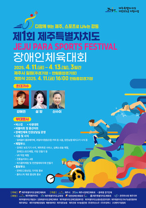 제1회 제주특별자치도장애인체육대회가 오는 4월 11일 제주시 한림종합운동장에서 개막한다.제주특별자치도장애인체육회가 주최하고 제주시, 제주시장애인체육회, 종목별 경기단체가 주관하는 이번 대회는 한림종합운동장 등 18개 경기장에서 배드민턴, 휠체어농구 등 22개 종목경기가 펼쳐진다.이에 앞선 4월 6일에는 수영 종목 사전경기를 진행하고, 이후 4월 11일부터 13일까지 사흘간의 공식 일정을 치른다.특히 올해부터는 기존 도민체전에서 장애인부를 분리 개최하는 만큼 장애인선수를 위한 전문적인 대회 운영이 기대되고 있다.개회식은 4월 11일