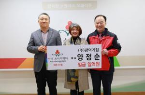 양정순 ㈜광덕기업 대표(52)가 지난해 먼저 가입한 남편을 따라 고액 기부자 모임인 아너 소사이어티 회원에 이름을 올렸다.제주사회복지공동모금회(회장 김남식)는 지난 24일 양 대표가 공동모금회 사무실에서 어려운 이웃을 위해 1억원을 기부하며 아너 소사이어티 회원으로 가입했다고 26일 밝혔다.양 대표는 지난해 3월 제주에서 70번째로가입한 남편인 고윤석 ㈜광덕전력 대표(50)와 나눔의 뜻을 함께 하고자 기부를 결심했다.양 대표는 도내에서 97번째, 전국에서는 1967번째 아너 소사이어티 회원이 됐다. 또 고윤석·양정순 부부는 도내에서
