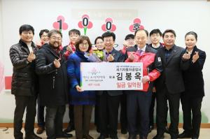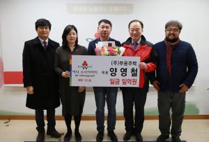 김봉옥 대표, 아너 소사이어티 100호 가입김봉옥 현대블루핸즈 세기자동차공업사 대표(64)가 개인 고액기부자 모임인 아너 소사이어티 회원에 이름을 올렸다.제주사회복지공동모금회(회장 김남식)는 지난달 31일 김 대표가 공동모금회 사무실에서 도내 어려운 이웃을 위해 1억원 기부를 약속하며 아너 소사이어티에 가입했다고 2일 밝혔다.김 대표는 도내에서 100번째, 전국에서는 1996번째 회원이 됐다. 김 대표는 2008년 설립한 청암장학회를 통해 매년 애월중 등 4개 학교에 장학금을 전달하고 있으며, 올해 법무보호 자원봉사대회에서 최고기부